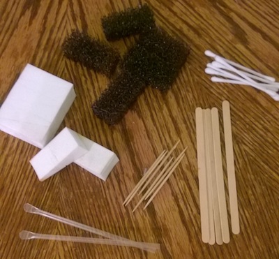 sponges, stipple sponges, Q-tips, a variety of