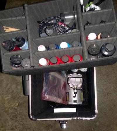 While working as a special effects artist, preparation is key. Being so well set up, all items divided